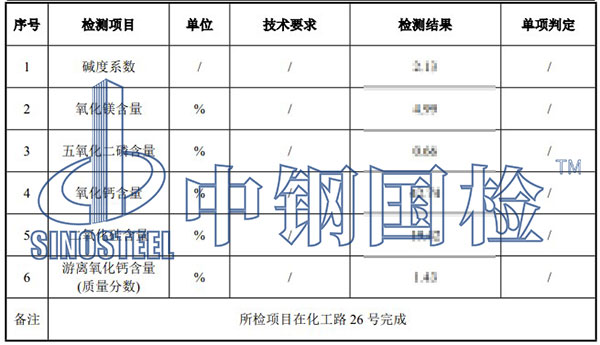 检测项目:1.碱度系数,2.氧化镁含量,3.五氧化二磷含量,4.氧化钙含量,5.二氧化硅含量, 6.游离氧化钙含量(质量分数)。